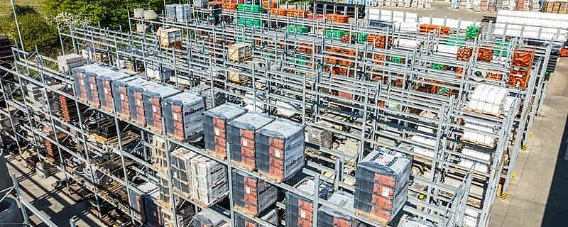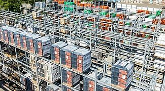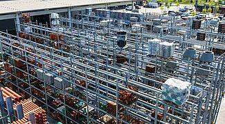 Regały paletowe, z których większość jest zaprojektowana jako podwójne rzędy regałów, oferują łącznie około 3 400 miejsc składowania. Długość poziomów składowania regałów wspornikowych wynosi łącznie ponad 1 250 metrów, rozmieszczonych na sześciu poziomach składowania. Wszystkie regały do użytku zewnętrznego są cynkowane ogniowo, a niektóre regały wspornikowe są również wyposażone w dach. Wysokość i głębokość użytkowa pionowych regałów zostały również dostosowane do portfolio listew firmy Benthack. Dzięki pionowym regałom dystrybutor materiałów budowlanych może zaprezentować różne wymiary i wersje swoich listew w sposób przyjazny dla klienta.